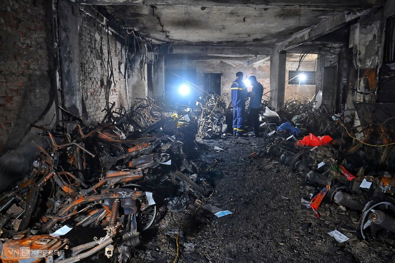 Tàn dư hậu quả của vụ cháy đau thương chung cư mini Khương Hạ